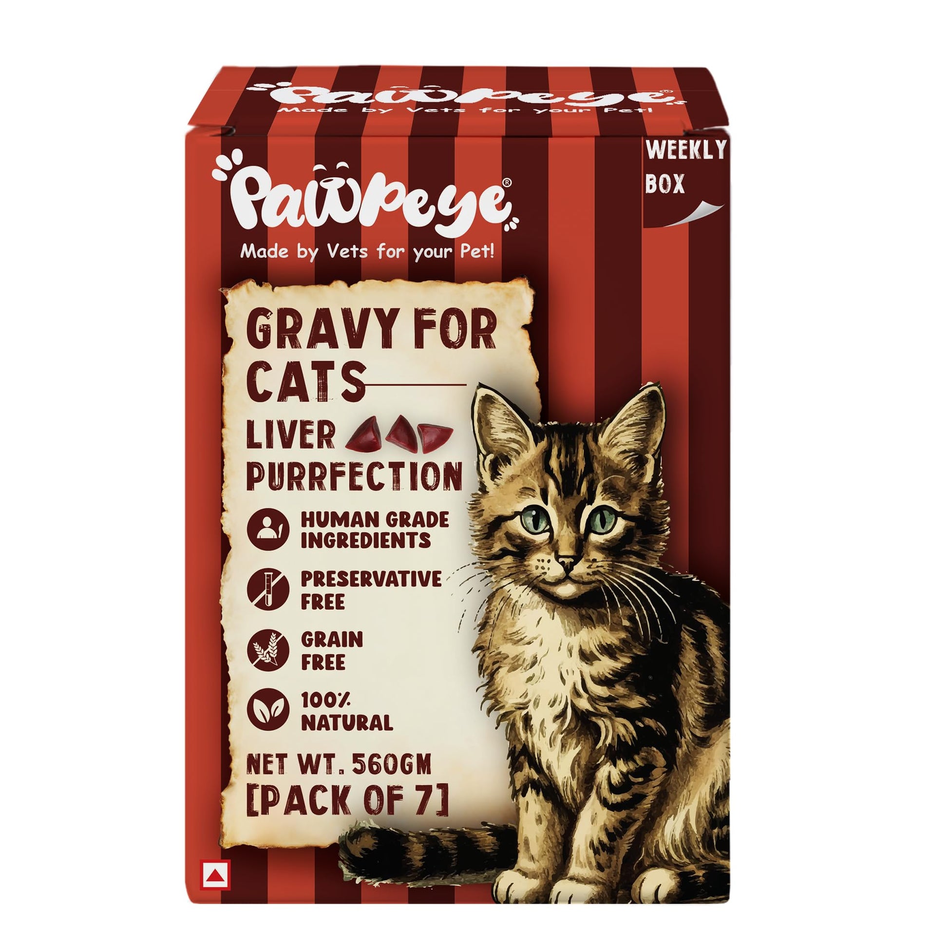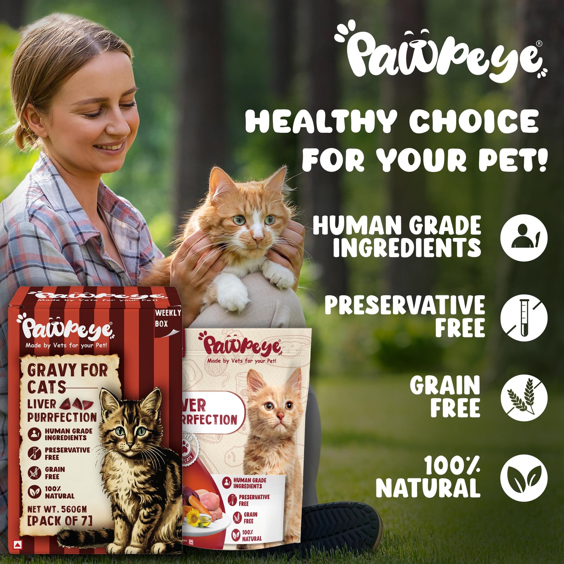 Pawpeye - Liver Purrfection - Weekly Box - Pack of 7 (560g, 80g Each) - Grain Free, No Preservatives, No fillers|Tasty Yet Healthy Wet Cat Food, Made by Vets Even for Fussy Eaters