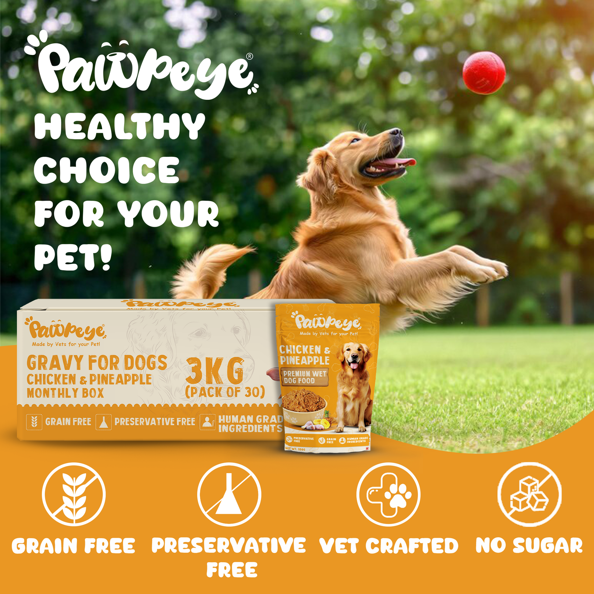 Pawpeye Wet Dog Food Monthly Box(Pack of 30)-Chicken & Pineapple Flavour | 100g each | for Adult Dogs & Puppies | Vet-Formulated, Human-Grade, Grain & Preservative-Free, 100% Natural