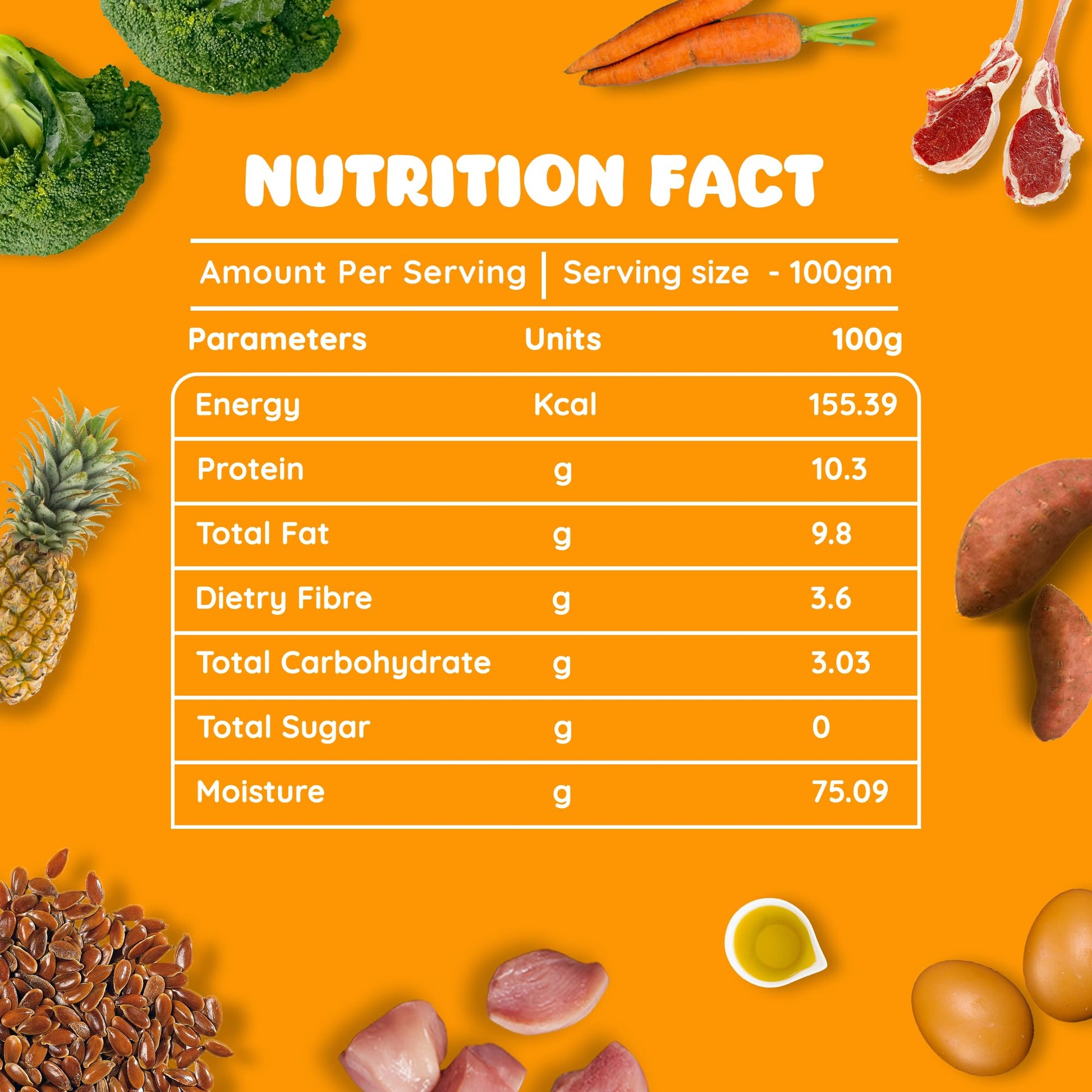 Each 100g semi-liquid pack is a complete, ready-to-serve meal — carefully crafted with lean proteins, real fruits and vegetables, and essential nutrients that support daily wellness from the inside out.