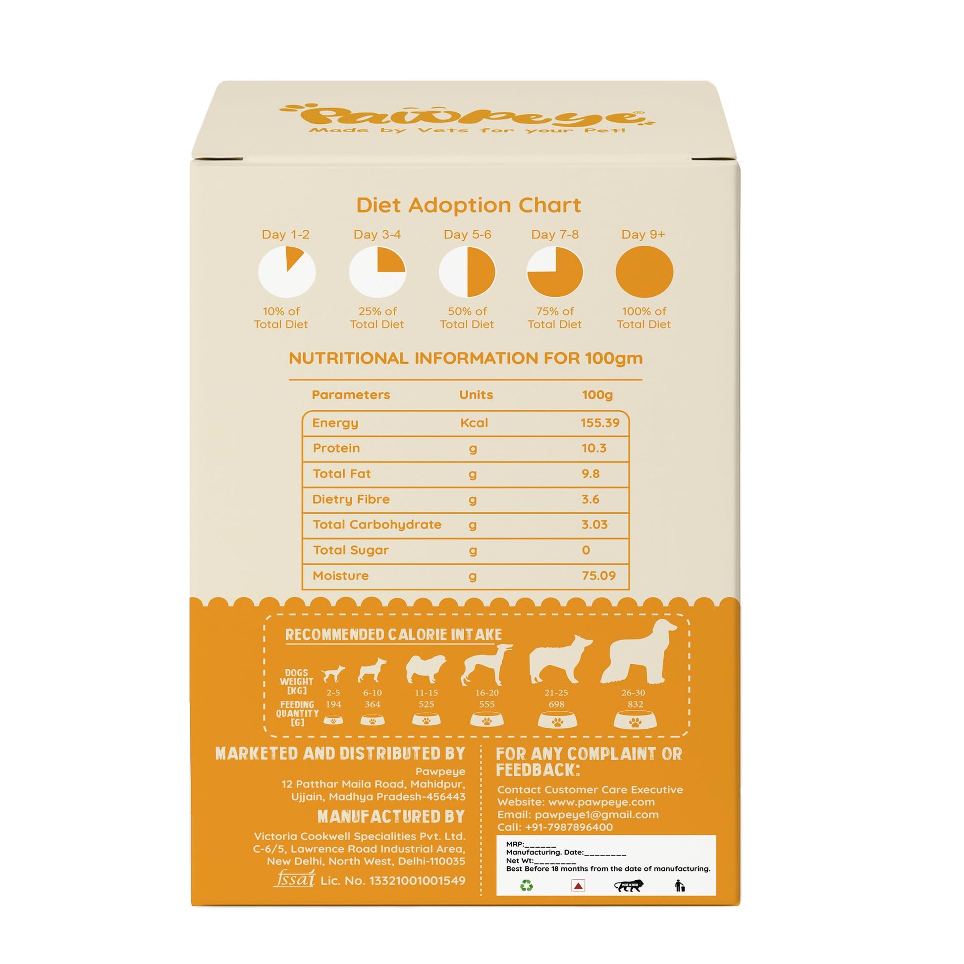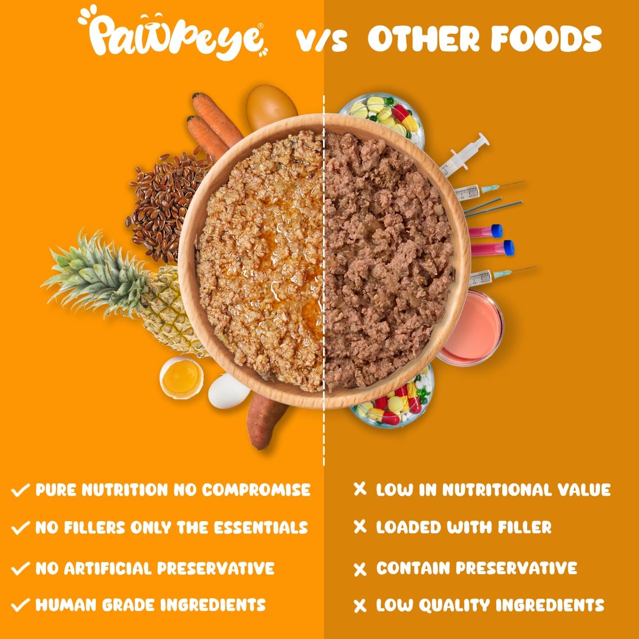 Pawpeye meals are gently cooked and retort-sealed to naturally preserve freshness and nutrition — without the need for harmful additives or synthetic preservatives.