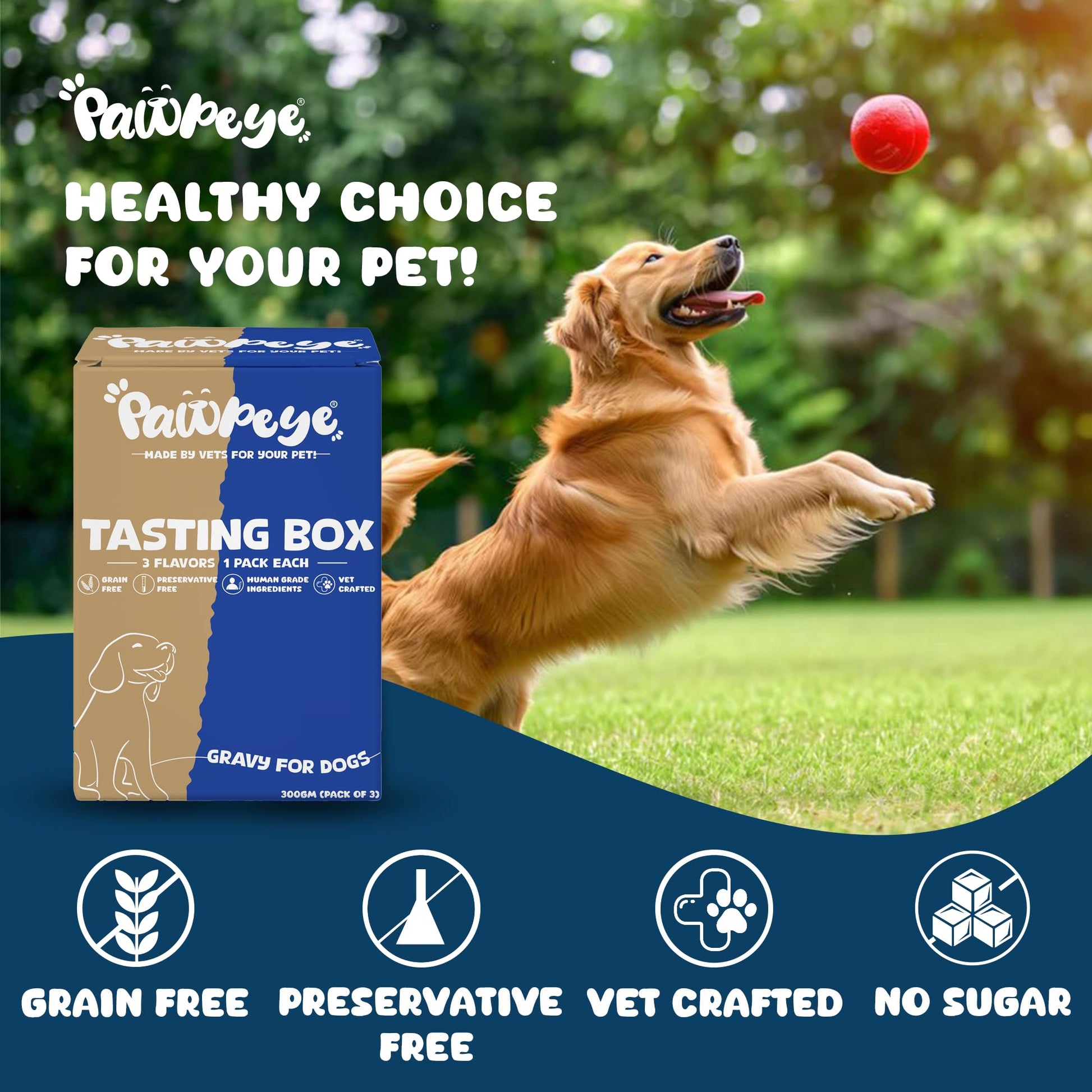 Pawpeye Wet Dog Food Combo Boxes (3 Flavours–Chicken, Lamb, Pineapple) | 100g Each | Premium Gravy Meal for Adult Dogs | Vet Formulated, Human-Grade, Grain-Free, Preservative-Free