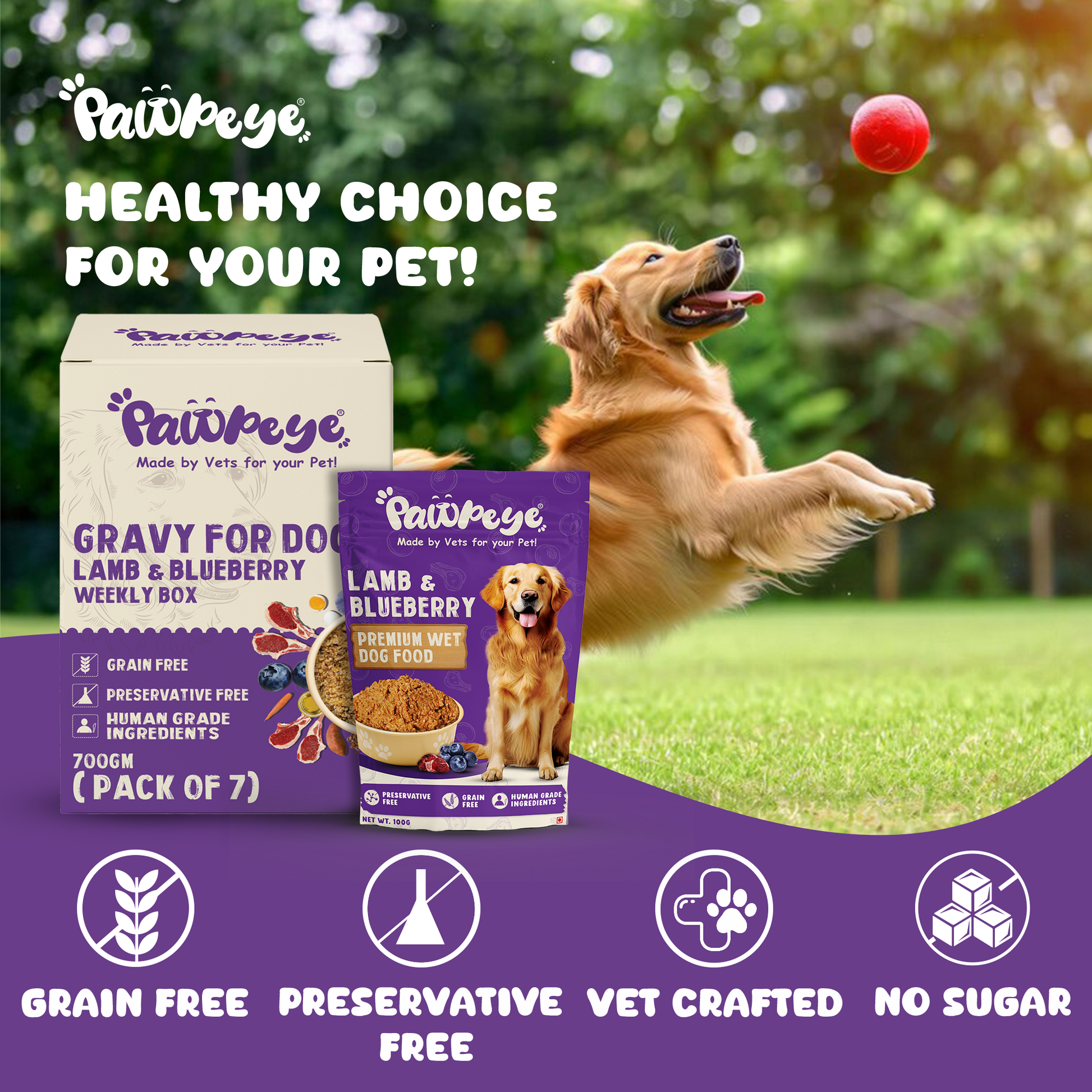 Pawpeye Wet Dog Food Weekly Box(Pack of 7)-Lamb & Blueberry Flavour | 100g each | for Adult Dogs & Puppies | Vet-Formulated, Human-Grade, Grain & Preservative-Free, 100% Natural